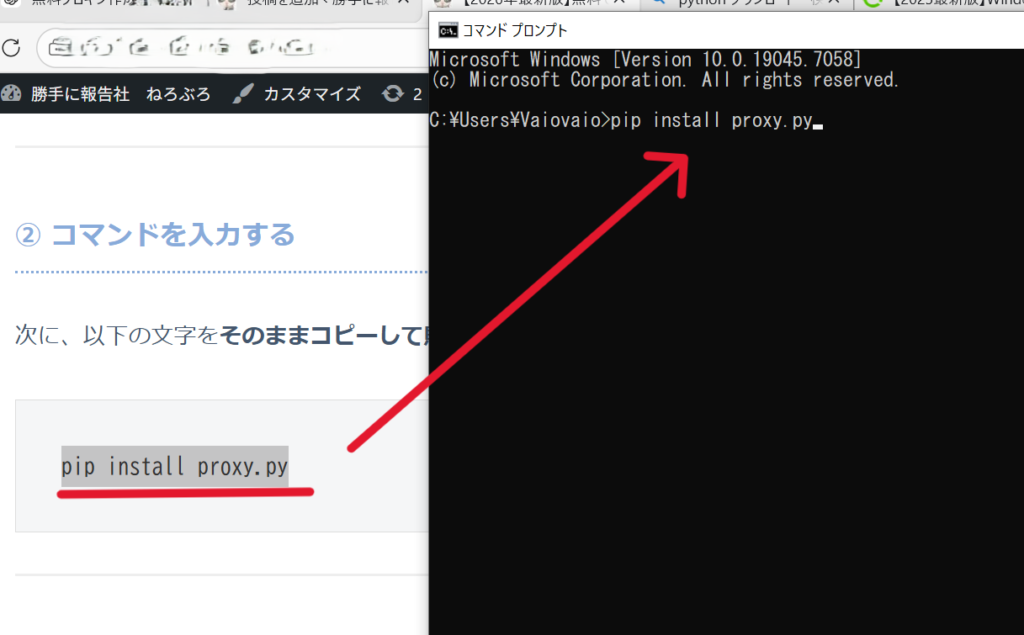 ここでは、Pythonを使って、プロキシサーバーを動かすためのツールをインストールします。