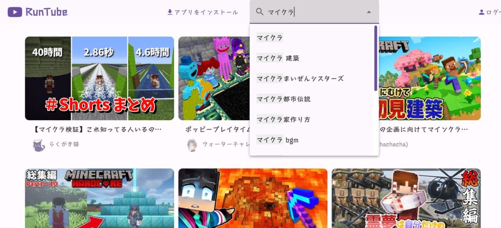 するとマイクラ関連動画が出てきます。